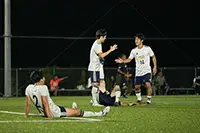 写真:89分にこぼれ球を蹴り込む東蹴の池尻。