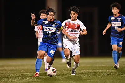 関東サッカーリーグ1部第17節は上位2強の結果に人々の耳目が集まった。1位の東京ユナイテッドFCは東京23FCを相手に1-0の勝利。一方、2位の南葛SCと流通経済大学ドラゴンズ龍ケ崎の一戦は、後半31分に流経大が先制点を挙げ、一時はユナイテッドが今節で優勝する可能性があった。しかし南葛は後半39分、45分と連続得点で逆転。ユナイテッド初戴冠の瞬間は、20分も経たずに遠のいた。