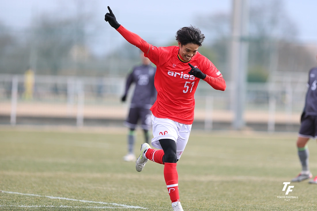 冷たい強風、所々にデコボコもある天然芝のピッチ、前半のエリースは思うようにゲームを運べなかった。最終ラインからのキックが、中盤のつなぎが、あさっての方向に飛んでいく。全体の主導権は握りながらも、どこか勢いが加速しないまま前半を終わりかけた。それでも「前半残り3分のタイミングで声がかかった」という野村がピッチに送り出されると、その直後に貴重なゴールが生まれた。