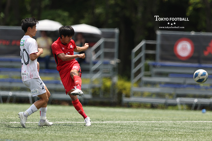開始から一方的に攻めていながら、FW青木らが決定機を決め損ねて0-0のまま時間は推移。そうこうしているうちに反撃の機会を全くつくれなかった江戸川に1本、2本とシュートチャンスを与えて嫌な雰囲気もチラついた。しかし33分、エリア内右でボールを受けたMF宇宿が左足を振り抜いてようやく先制点。