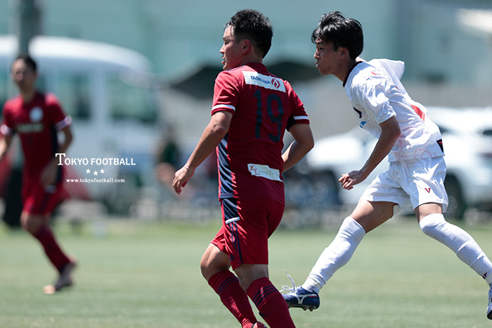 後半早々にも左右の揺さ振りから及川がヘディングで加点して2-0。だが、一方で守備は前半から東蹴のFW政森を目がける一本槍の同じパターンに何度もやられそうになる体たらくで、75分にはそのパターンで結局失点して1点差。
