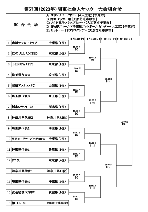 SHIBUYAとEDOは同じトーナメントの山で、両者が初戦を突破した場合は準々決勝(2回戦)で当たることから、両チームが同時に関東リーグに昇格することはない。
