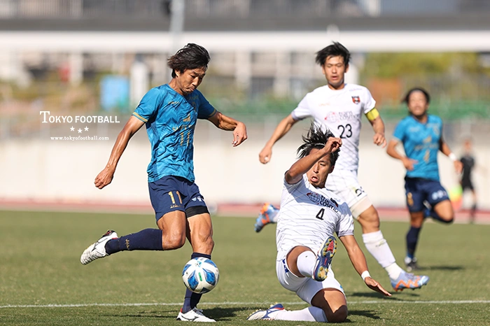 すでに全国地域CL出場権を獲得している両者の一戦は和歌山に軍配が上がった。前半は都農が攻勢。右サイドの高い位置で左利きのMF堀が起点となり、そこから10番中村やFW鈴木が絡んでシュートに持ち込むが、相変わらず和歌山は手堅く守り、したたかにゲームを進めた。