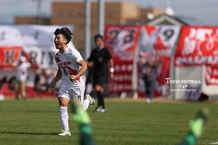 自陣を抜け出せない後ろ向きな姿勢が21分にオウンゴールを招いて同点に追いつかれ、そのまま逆転ゴールを許してもおかしくない状況が続いた。それでも35分には相手の前がかりの裏を巧みに突いて、山崎のラストパスを宮本がミドルシュートを突き刺し勝ち越しに成功。だが、そのわずか2分後にはCKの流れから刈谷の園田に決められて2-2で前半を終えることになり、勝負の行方はわからなくなった。