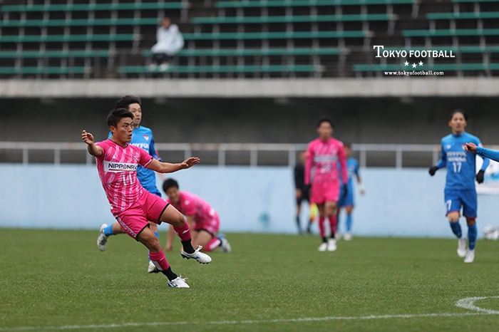 第1試合でVONDSが2-0で終えて暫定首位に立ったことで、栃木が優勝するには2点差以上の勝利が条件。ただ、それは相手のつくばも同条件で、2点差以上の勝利で優勝が決まる。どちらが先手を奪うかに注目が集まったが、先制点は栃木が奪取。今矢監督は「先制点は狙い通り。アグレッシブにいけばプレスでボールを奪えることはスカウティングでわかっていた」。