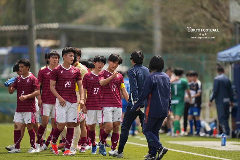 後半に入ると暑さの影響もあり、ボールを保有する早大が有利にゲームを運ぶ展開。八王子の最終ラインの背後を次々に突き、武沢のミドルシュートや伊藤の2得点などで4点を追加した。八王子はゴール前に運ぶ回数は多かったが、最後の精度で劣り、85分に尾崎が1点を返すにとどまった。