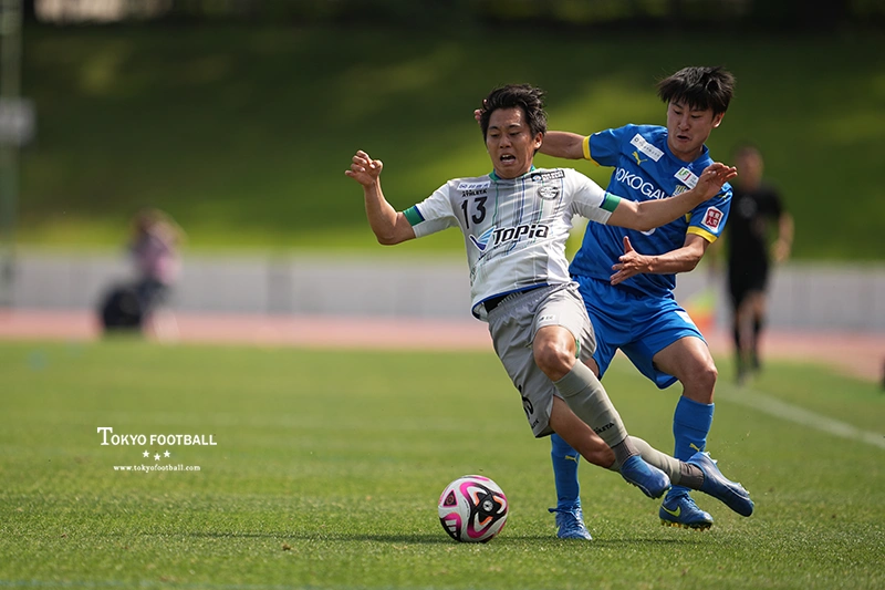 2戦続けてアウェーで0-3で敗れ、前節からスタメン5人を入れ替えて臨んだ武蔵野は開始からアグレッシブに攻めた。だが、エリア内の絶好機で小野寺がDFにシュートをぶつけ、ゴール目の前の澤野のヘッドはバーを叩く。