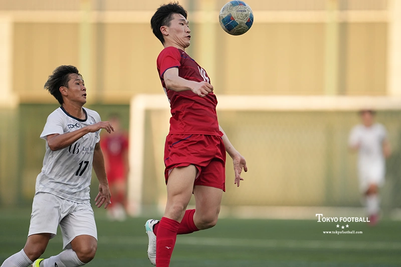 最終ラインの一角には最近登録を済ませ、試合に出るようになった身長185cmのセンターバック、明石の姿が。今春大学を卒業し、勤務地や内容が定まったあとで現役の続行を決断。かつて育成年代でプレーした三菱養和のトップチームに戻ってくる格好となった。木村(圭)や小出などディフェンス陣に負傷や警告の累積での離脱者が多く「少し後ろが厳しかったので、守れる選手が必要だった。いまチームに高さがないのでその点でも助かる」と漆間監督が言うように、隙を埋めていた。
