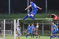 開始早々、裏を取ったFW加藤がエリア内のシュートチャンスを逃すと、9分にセットプレーの流れから府中アスレの土澤に強烈な左足の一撃をくらって失点。だが、主将のCB丸山は「準決勝も逆転勝ちできたし、じれずに我慢強く戦えた」と若い格下の相手を勢いに乗せず、23分にはCKからFW加藤が頭で叩いて効率よく同点。
