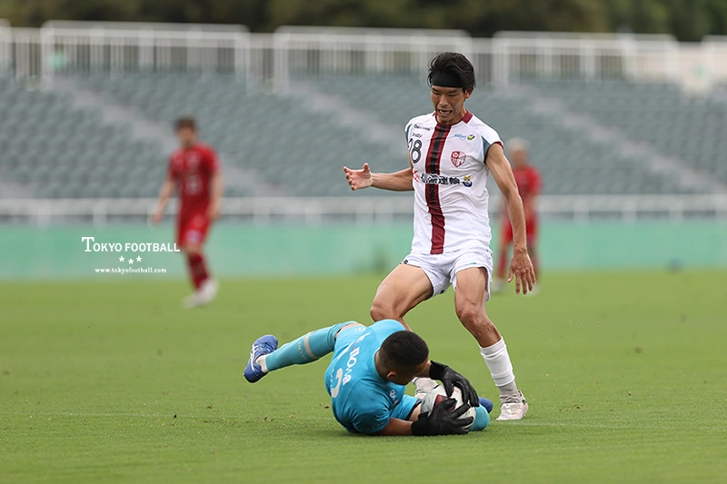 「もったいない失点」には第8節、南葛SC戦での決勝点も含まれる。1-1の同点から後半42分、GK畔柳のパスが相手に渡るミスとなり、勝ち越しを許した。この敗戦につながった失点を畔柳はおおいに反省。今節に活かした。