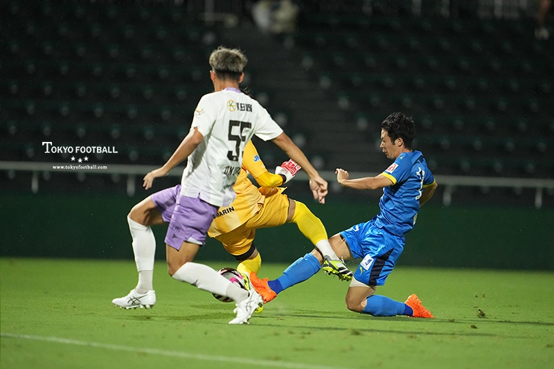 5試合勝利がなく、約1カ月ほどの中断期間中にはシステム変更や失点の多さを改善するための守備強化に取り組んできたという武蔵野。この日はGK伊藤が初先発し、前線にはケガから復帰の川戸を久しぶりに先発で起用。その2人の最後尾、前線での奮闘、さらにはチームとして取り組んだ諸々の効果もあってか、ゴールこそ奪えなかったが、失点0の時間が続き、ゲームは互角の展開のまま動かなかった。
