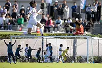 双方に押し寄せるチャンスの波にどちらが乗るか。一発で仕留めたのは都農だった。51分、都農はCKからのボールをファーサイドで濱口がヘッドで折り返し、それを中央で髙橋が頭で仕留めた。