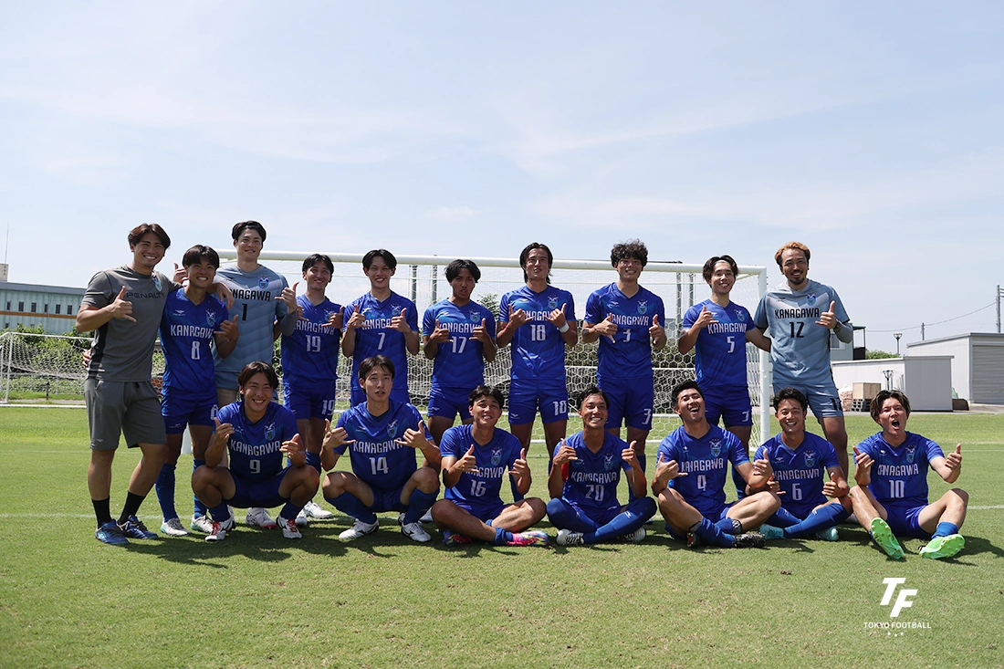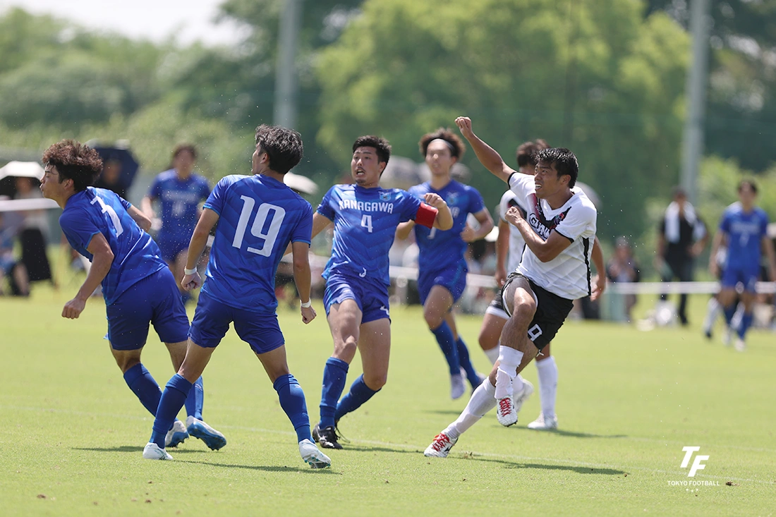 初戦で6点を奪った神奈川は群馬の手堅い守りに苦戦。前半はロングスローやセットプレーなどから荻野寛太らがゴールに迫りながらもなかなか決定打がでなかった。後半は一進一退が続いたが、均衡を破ったのは65分。右サイドから相手の守備ブロックを迂回し、鈴木琉星が折り返したボールを中央で佐藤耕太が押し込み決勝点。2019年以来の本大会出場を決めた。