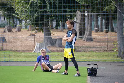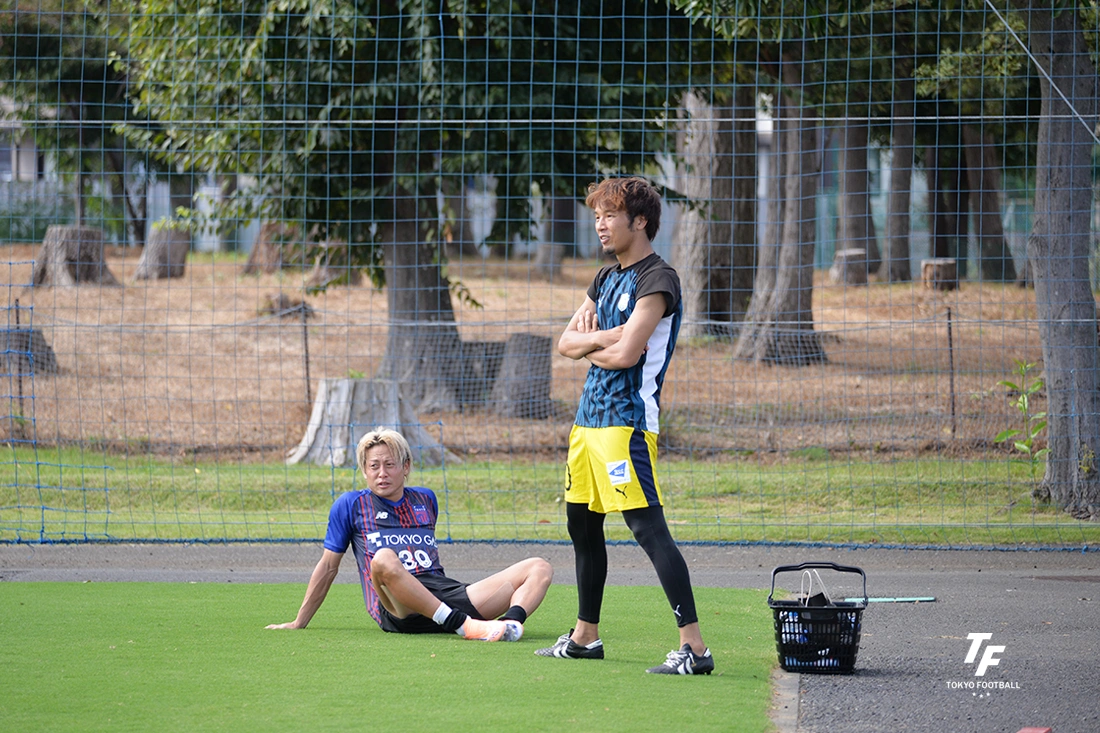 FC東京には武蔵野の10番後藤と専修大学時代にチームメイトだった仲川輝人が在籍。前日のJ1公式戦で出場機会がなかったことからこの日の練習試合出場が実現したが、互いにプレーした時間帯が異なり、ピッチ上での直接対決はならず“ニアミス”に終わってしまった。しかし試合後の談笑は別。引退する後藤の今後についてなど互いの近況について穏やかに話し合った。
