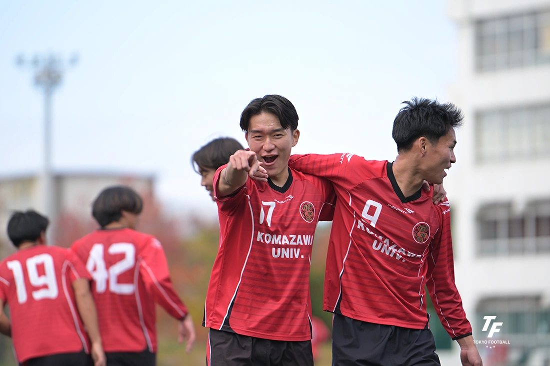 駒大GIOCOは前日の初戦に続き、早い時間での先制点。さらにこの日はすかさず追加点も挙げ、1年で関東復帰を目指すアヴェントゥーラ川口を相手に序盤からゲームの主導権を握った。「90分走り切れる自信があったので、ゲームの入りから思い切り行った」という主将のCB鈴木。