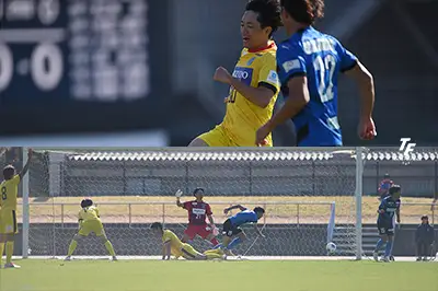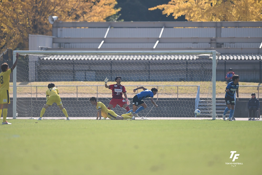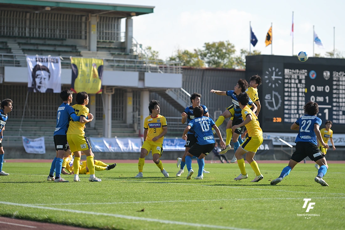 ただ、勝負の後半はやはり違いを見せつけられた。最初に決定機を作ったのは東京Uで、最終ラインの背後に室崎が抜け出す、エリア左から滝澤がシュートを放つなど、惜しい場面も作ったが、63分、カウンターから自陣ゴール前まで運ばれ、最後は左からのクロスにジェイリースの薗田に頭から飛び込むダイビングヘッドで押し込まれた。