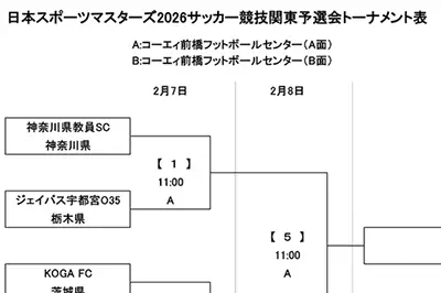 35歳以上による日本スポーツマスターズ2026関東予選会の組み合わせが25日に発表され、東京都代表のエリース東京over35は、1回戦で開催地の群馬教員SC O35(群馬県)と対戦することが決まった。