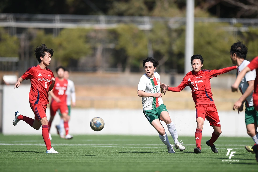 規定の70分間を0-0で終えた東京カップ1次戦決勝第1試合は、PK戦の末に今年から2部(昨年3部)に復帰する三菱UFJ銀行が1部のCERVEZAを下し、2次戦への進出を決めた。